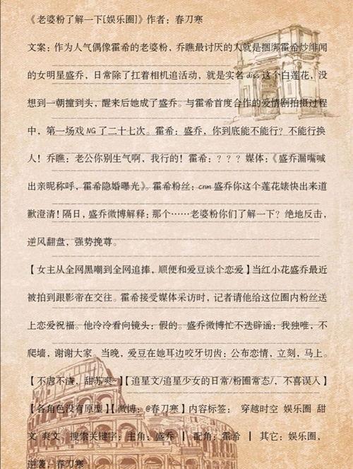 所以,亲爱的你,如果也想了解娱乐圈的真相,不妨去看看这篇推文小说。相信我,它一定会给你带来意想不到的收获。毕竟,生活就像一本小说,只有亲自翻开,才能找到属于自己的故事。